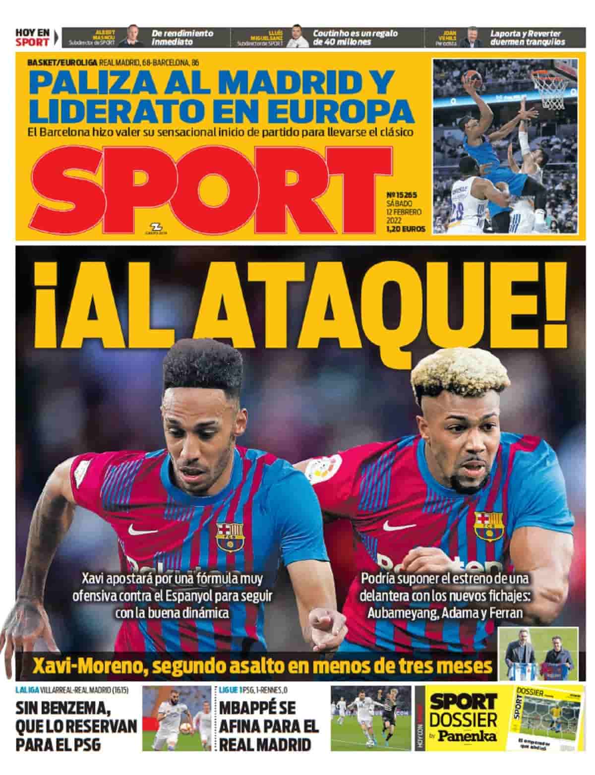 ونشرت الصحيفة الإسبانية عن مباراة برشلونة وإسبانيول وعلقت: “برشلونة.. إلى الهجوم“، كما ركزت الصحيفة عن مواجهه فياريال وريال مدريد بالدوري الإسباني وكتبت: ”دون بنزيما الذي احتفظ به لمواجهه باريس سان جيرمان“، كما نشرت عن فوز باريس سان جيرمان على رين بهدف مبابي وكتبت: ”مبابي يضبط إيقاعه من أجل ريال مدريد“.