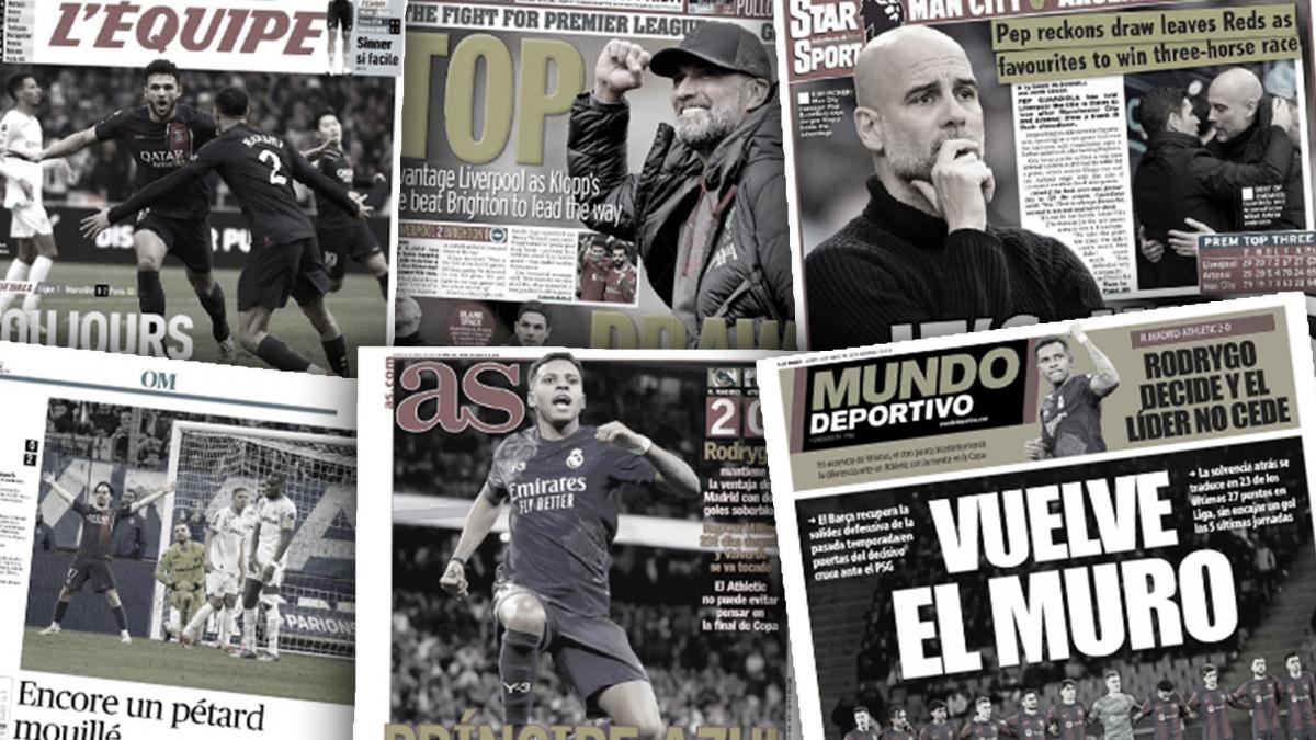 سلطت الصحف الرياضية العالمية اليوم الأثنين 1 إبريل الضوء علي غضب كيليان مبابي لاعب باريس سان جيرمان بعد خروجه من الملعب بعد استبداله من جانب إنريكي، وفالفيردي يتعرض للإصابة من مباراة ريال مدريد وأتليتك بلباو بعد سقوطه أرضاً قبل نهاية المباراة، ومانشستر يونايتد ينافس غريمه مانشستر سيتي على الظفر بخدمات جيريمي فريمبونج ظهير باير ليفركوزن في الميركاتو الصيفي.