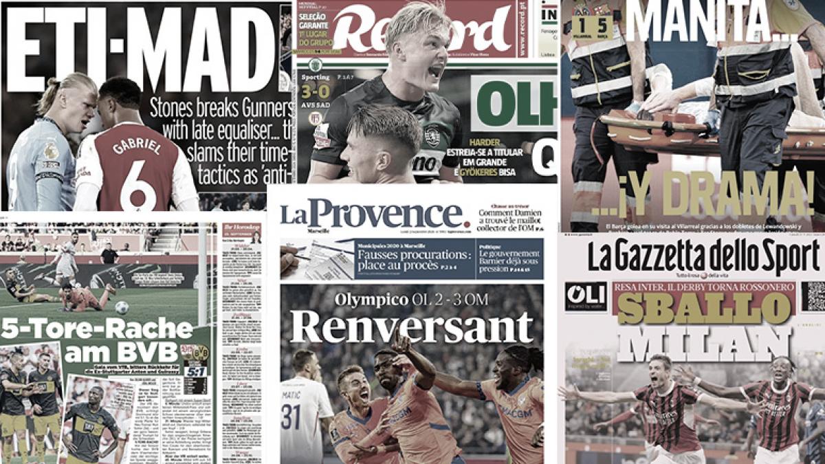 سلطت الصحف الرياضية العالمية اليوم الأثنين 23 سبتمبر الضوء علي فوز برشلونة الكبير علي فياريال في الدوري الإسباني وتعرض تير شتيجن لإصابة خطيرة، وتعرض اللاعب رودري للإصابة مع مانشستر سيتي أمام أرسنال بالدوري الإنجليزي، وميلان يخطف فوز رائع أمام الإنتر في ديربي ميلان بالدوري الإيطالي.