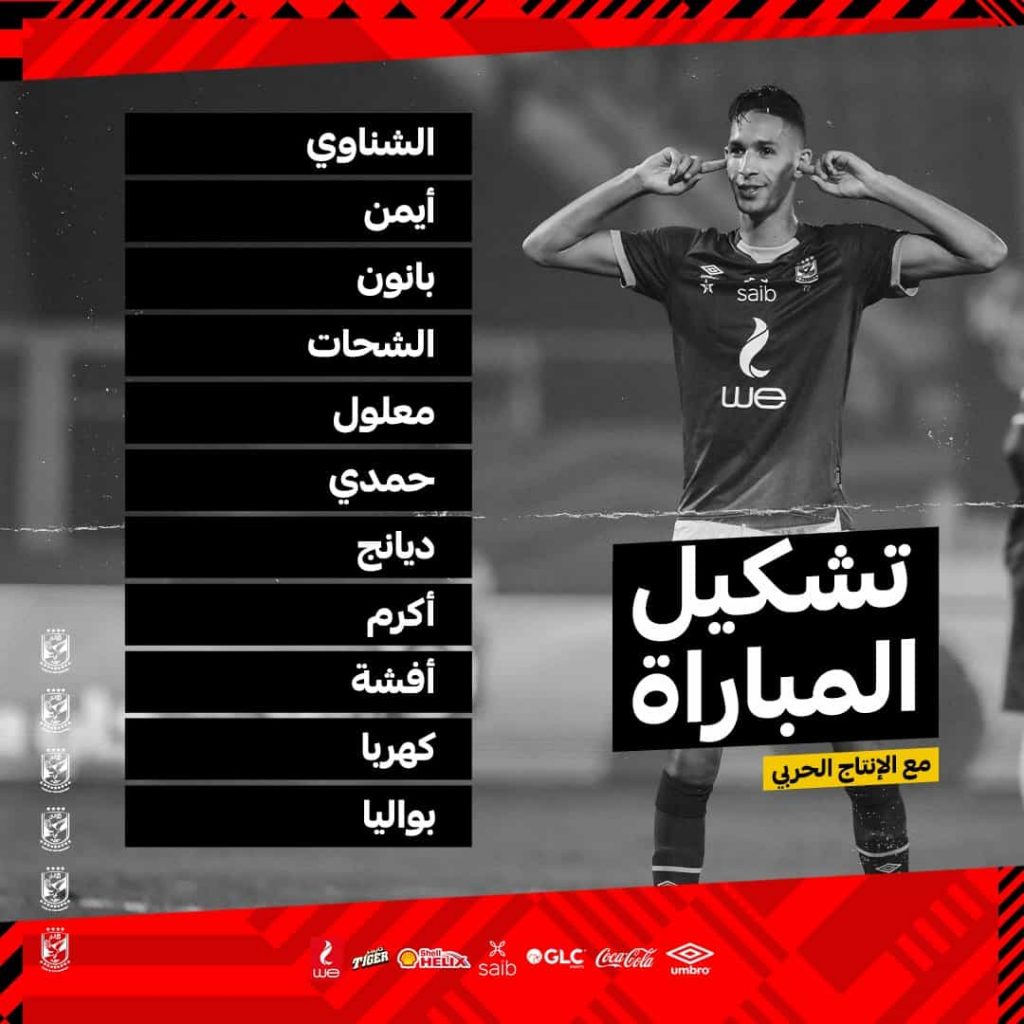 وشهدت التشكيلة استمرار والتر بواليا في قيادة هجوم الفريق الأحمر والدفع بالثنائي محمد مجدي “أفشة” ومحمود عبد المنعم “كهربا” في تشكيل فريقه الأساسي لمواجهة الإنتاج الحربي.