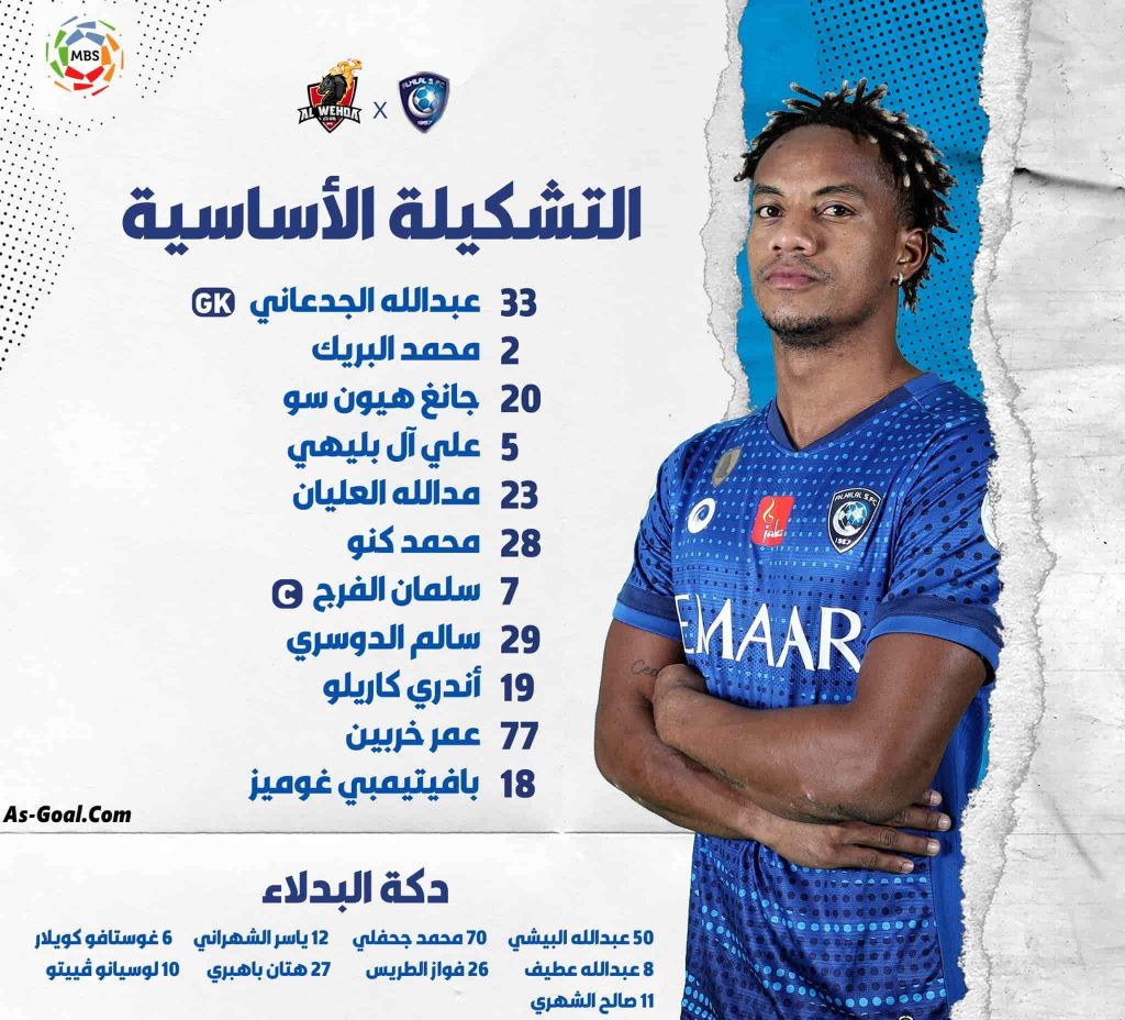 التشكيلة الرسمية لنادي الهلال أمام الوحدة بالدوري السعودي