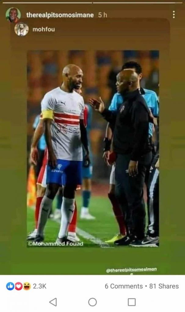 ونشر موسيماني صورة عبر حسابه بـ ”إنستجرام“ وهو يتحدث مع شيكابالا في إشارة منه ضد المتجاوزين في حق شيكابالا التي يتعرض لها نجم الزمالك وكان شيكابالا أصدر بياناً أعرب خلاله عزمه مقاضاة كل من يسيء له خاصة بعدما أعلن اتحاد الكرة المصري إيقافه وتغريمه مالياً بسبب سلوكه غير الرياضي.