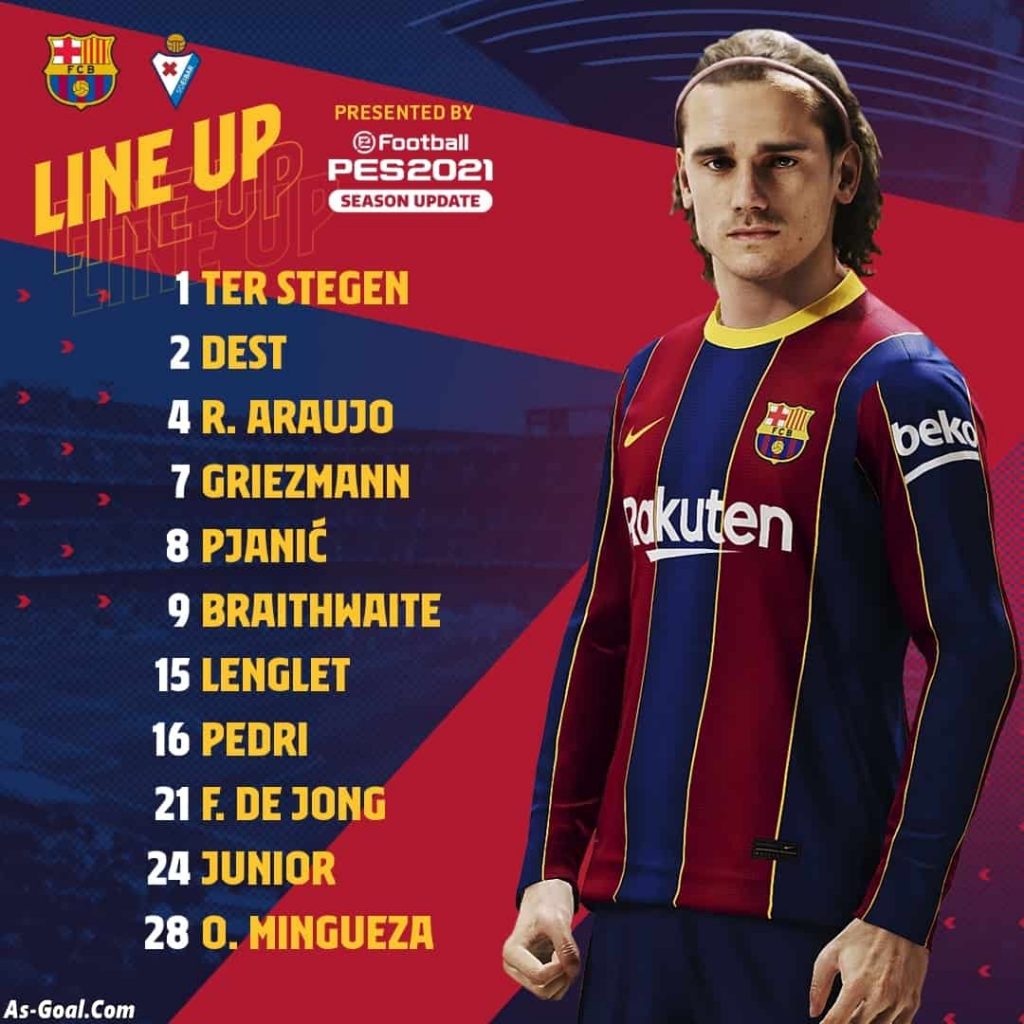 أعلن المدرب الهولندي “رونالدو كومان” المدير الفني لنادي برشلونة عن تشكيلة برشلونة التي سوف يخوض بها مواجهة ضيفه إيبار بعد قليل في تمام الساعة 9:15 بتوقيت مكة المكرمة في إطار لقاءات الجولة رقم 16 من عمر بطولة الدوري الإسباني على ملعب “كامب نو”.