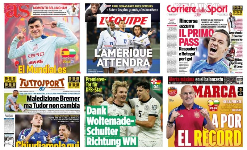 أبرز عناوين أغلفة الصحف الرياضية العالمية: “بيدري: “كأس العالم حلمنا الكبير”