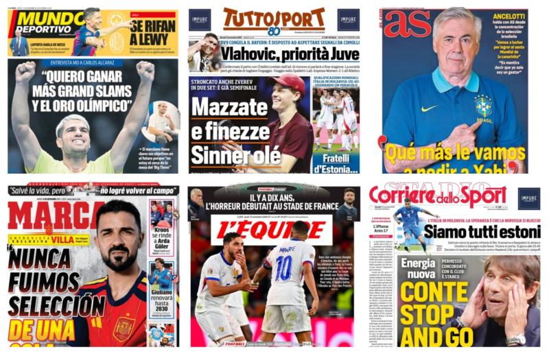 أبرز عناوين أغلفة الصحف الرياضية العالمية: “مقابلة حصرية مع أنشيلوتي”