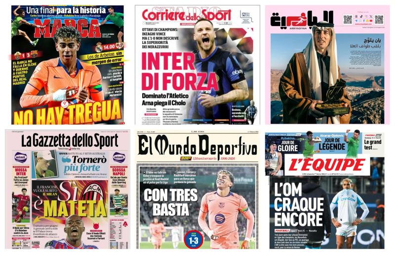 أبرز عناوين أغلفة الصحف الرياضية العالمية: “برشلونة يرفض الاستسلام في الليجا”