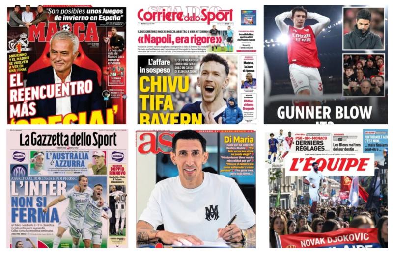 تطرقت الصحيفة إلى الحسابات المعقدة في مجموعة إنتر بدوري الأبطال، حيث ذكرت أن الروماني كريستيان تشيفو يشجع بايرن ميونخ للفوز على آيندهوفن، لأن مدرب الفريق الهولندي ربط السماح برحيل لاعبه بيرسيتش بخروج فريقه من البطولة الأوروبية.