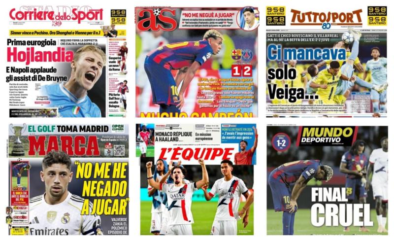 أبرز عناوين أغلفة الصحف العالمية: “باريس سان جيرمان يهزم برشلونة 2-1 في مباراة مثيرة”
