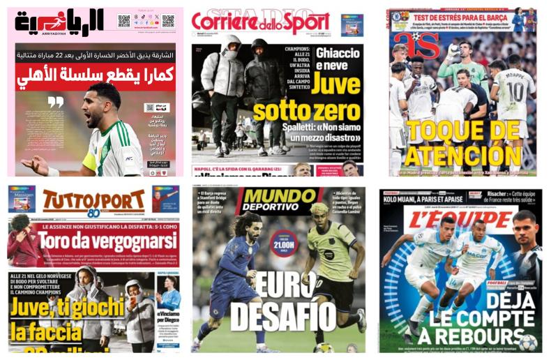 أبرز عناوين أغلفة الصحف العالمية: “برشلونة يعود إلى ستامفورد بريدج في مباراة حاسمة”