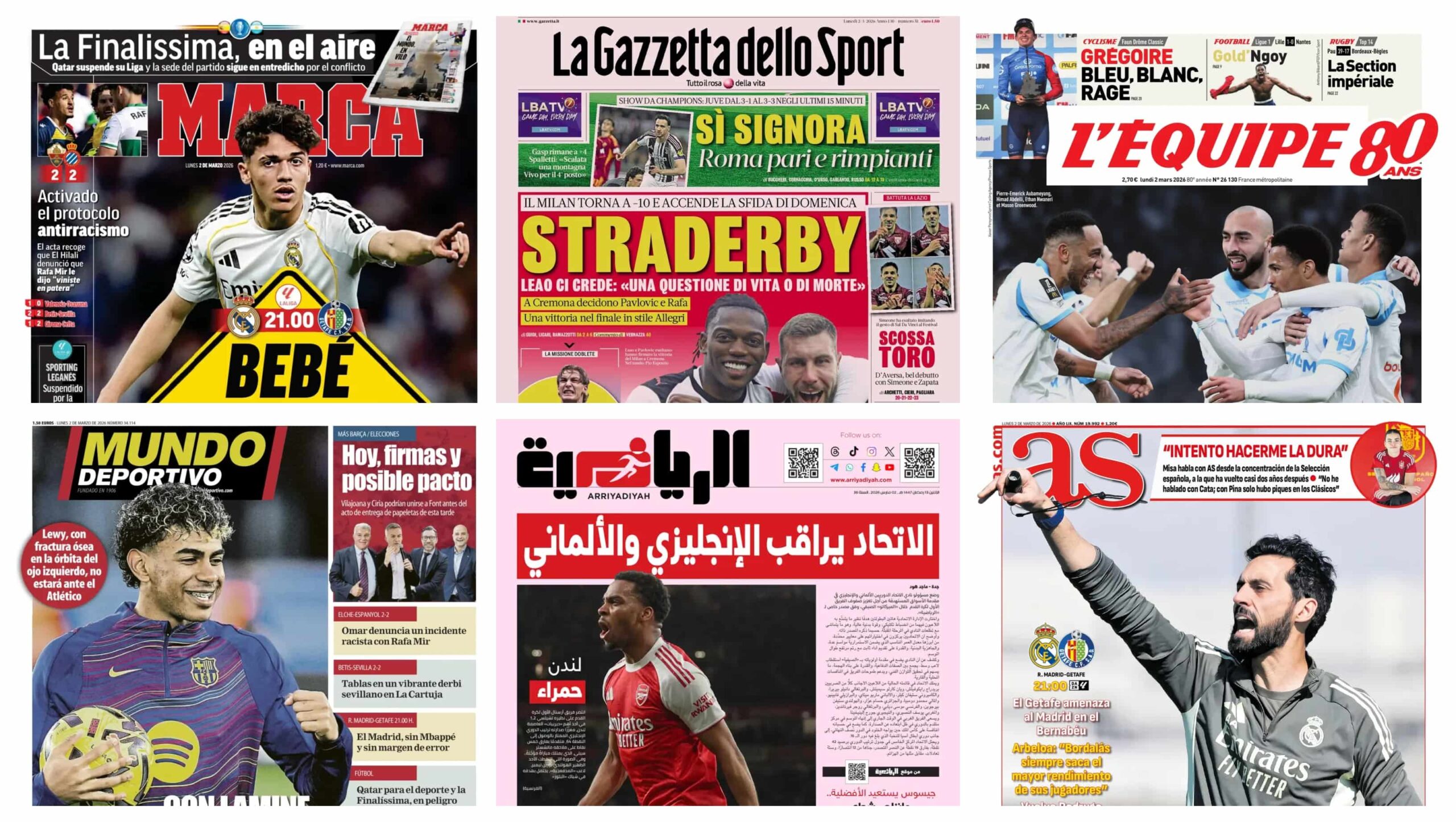 شهدت واجهات الصحف العالمية الصادرة اليوم الأحد 1 مارس ليلة حفلت بالتقلبات الدراماتيكية، حيث رفض يوفنتوس الاستسلام أمام روما في قمة إيطالية حبست الأنفاس، بينما واصل الجوهرة لامين يامال كتابة التاريخ في إسبانيا، وسط ترقب كبير لمستقبل الأسماء الكبرى في إنجلترا وتحركات سوق الانتقالات في الملاعب السعودية.