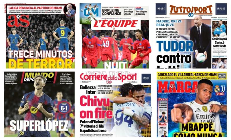 أستعرضت الصحف الرياضية العالمية الصادرة صباح الأربعائ 22 أكتوبر 2025 أبرز الأخبار والأحداث التي تشغل الساحة الرياضية الأوروبية والعالمية، حيث حملت الأخبار مفاجآت كبيرة وتطورات مهمة في عدة بطولات كبرى مثل الدوري الإيطالي والإسباني، إلى جانب تفاصيل بارزة من عالم الرياضة المختلفة.