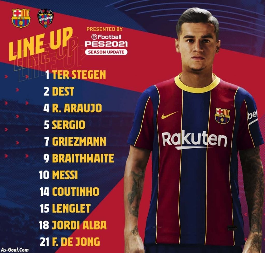التشكيلة الرسمية لـ برشلونة أمام ليفانتي في الدوري الإسباني