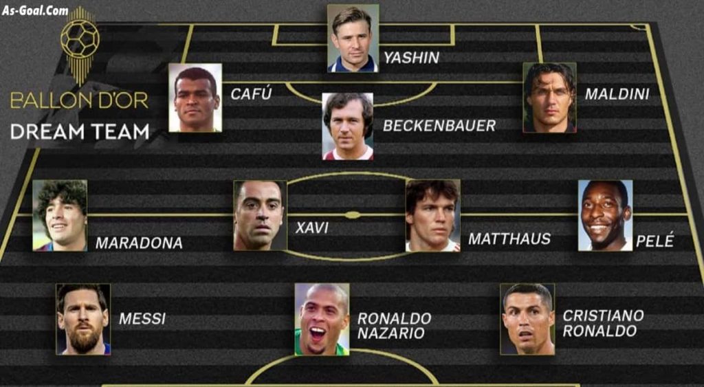 أعلنت مجلة “France Football” الفرنسية التشكيلة النهائية لأفضل 11 لاعبا في تاريخ كرة القدم “بالون دور تيم” اليوم الإثنين وساهم في اختيار التشكيلة 140 صحفيا من مختلف دول العالم.