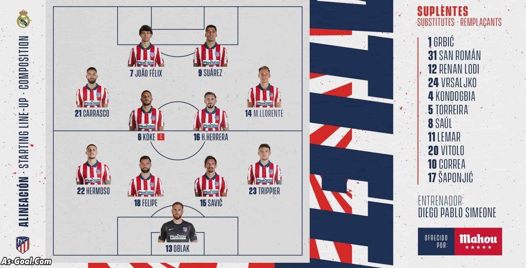 التشكيل الرسمي لـ أتلتيكو مدريد كالتالي: