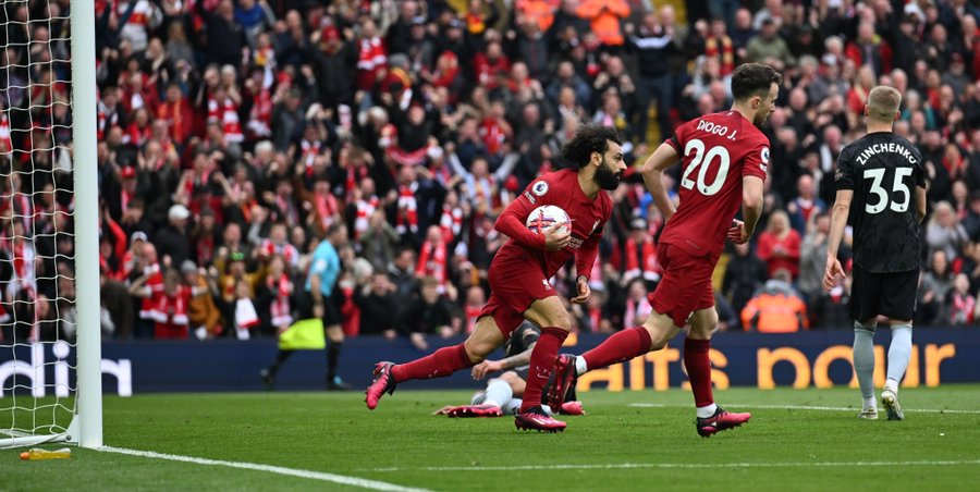 وقد أحرز فريق أرسنال الهدف الأول عن طريق جابرييل مارتينيلي في الدقيقة 8، ثم سجل جابرييل جيسوس الهدف الثاني للمدفعجية في الدقيقة 28، وفي الدقيقة 42 سجل محمد صلاح هدف تقليص الفارق.