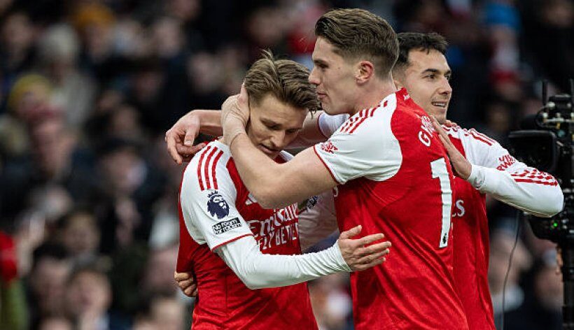 وبدأ أرسنال المباراة بضغط هجومي مكثف لم يمهل الضيوف فرصة لترتيب الأوراق، وترجم هذا الضغط سريعاً القائد النرويجي مارتن أوديجارد الذي افتتح التسجيل في الدقيقة 14، بعد جملة فنية رائعة وضعت الجماهير اللندنية في حالة من الحماس المبكر.