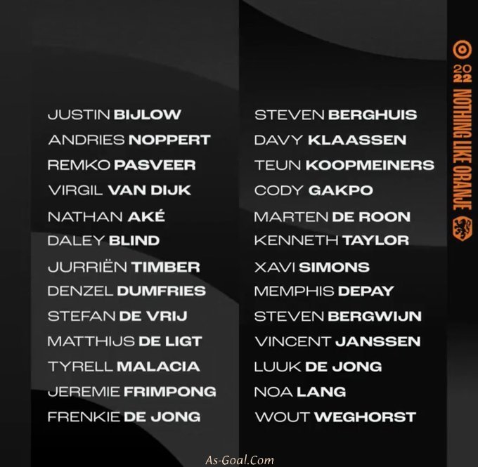 وجاءت قائمة المنتخب الهولندي كالتالي: