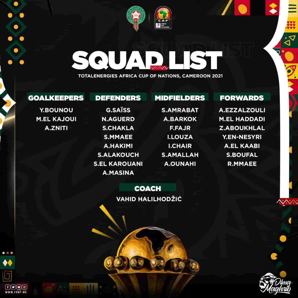 وجاءت قائمة المنتخب المغربي كالتالي: